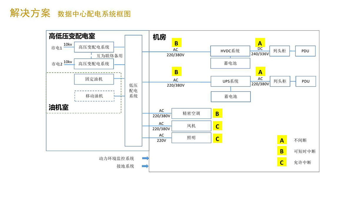 随着时代的发展,当今社会已经进入云时代,每年数据的增长量都超过人们的预测与规划。 在数据中心建设的过程中,人们希望能够按需分期建设,模块化的建设;另一方面,数据中心的运维和管理也逐步被数据中心运营商所重视;此外,据研究一个数据中心的用电成本占了整个运维成本的50%,所以电能的使用已经成为了未来数据中心发展的重中之重!我们能够为客户提供差异化的解决方案,确保满足客户运营商模块化建设的需求。 在近年建设的数据中心中,良信参与了诸多示范性数据中心项目的建设,如呼尔浩特、哈尔滨数据中心等,在这些项目中,我们为客户节省了大量投资成本,也将帮客户降低大量维护成本。